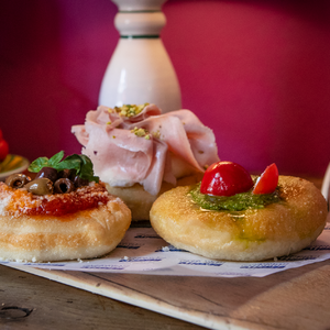 tagliere di prosciutto crudo Cavaliere Umberto Boschi, burratina, Salame dolce, mortadella di Bologna IGP